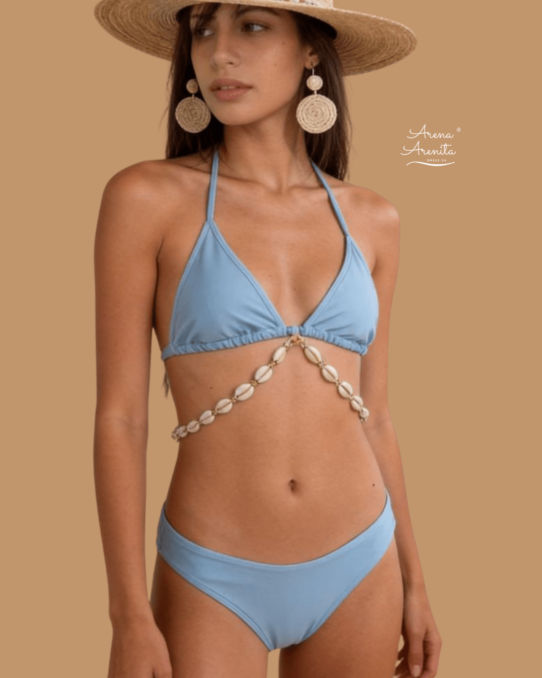 TRAJE DE BAÑO DOS PIEZAS CON TIRANTES Y COPAS TIPO PROTECTORES; CALZÓN TIPO BIKINI