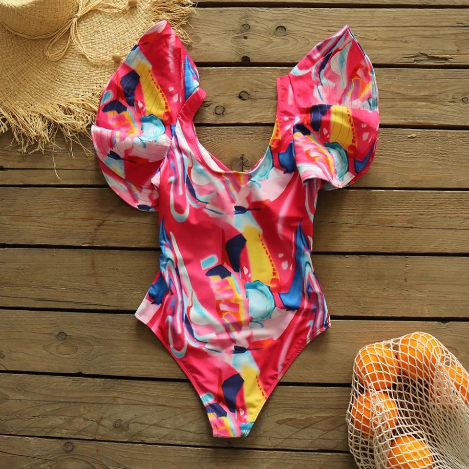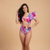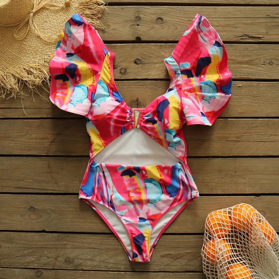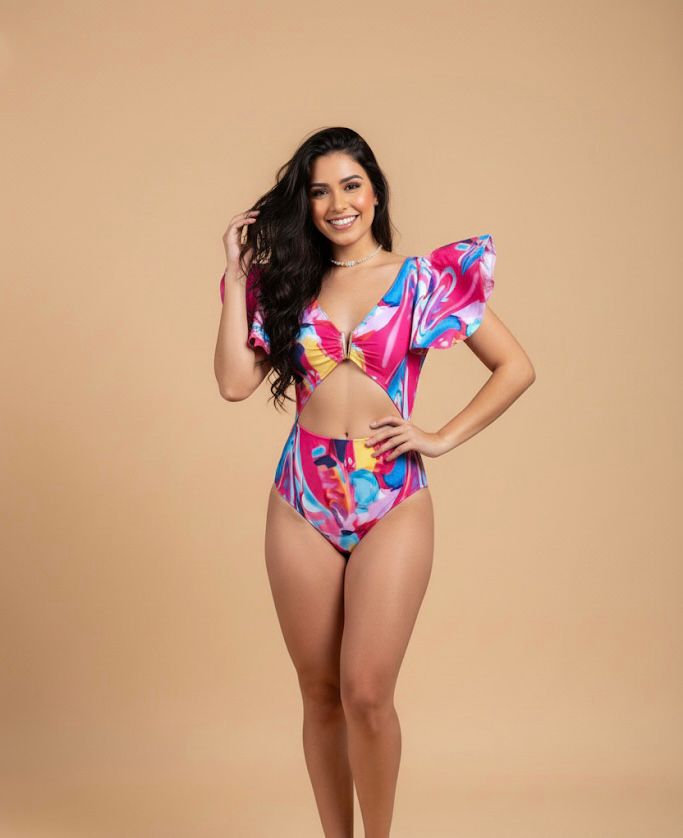 TRAJE DE BAÑO ENTERO CON MANGAS CON OLANES Y COPAS TIPO PROTECTORES.
