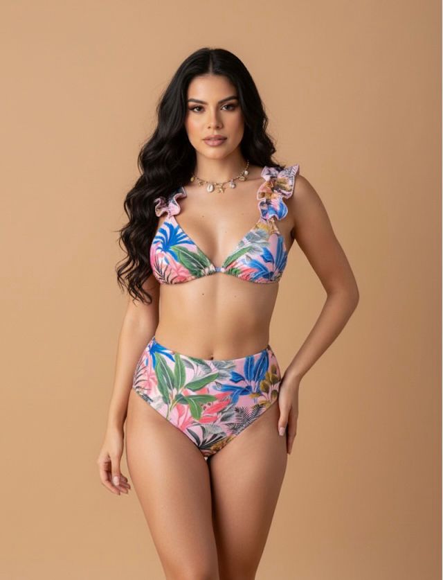 TRAJE DE BAÑO DOS PIEZAS CON TIRANTES Y COPAS TIPO PROTECTORES; CALZON TIPO TIRO ALTO.