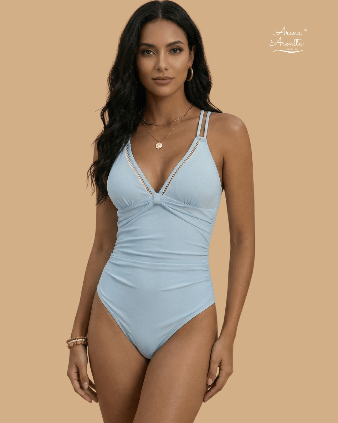 TRAJE DE BAÑO ENTERO CON DOS TIRANTES AJUSTABLES Y COPAS TIPO PROTECTORES.