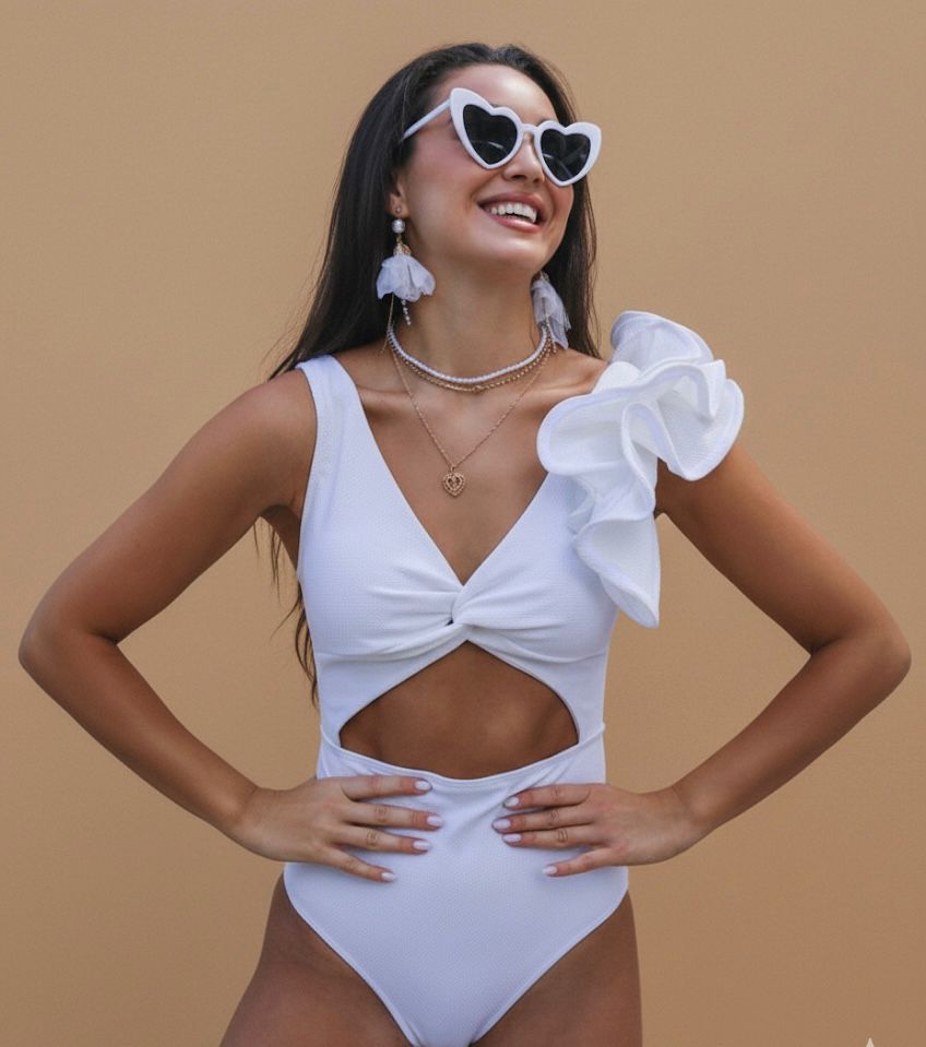 TRAJE DE BAÑO ENTERO CON A UN SOLO HOMBRO CON OLAN Y COPAS TIPO PROTECTORES,