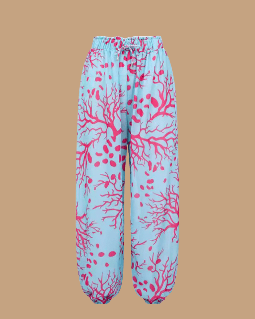 PANTALÓN TRANSPARENTE CON ESTAMPADO PIERNA AGLOBADA.
