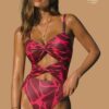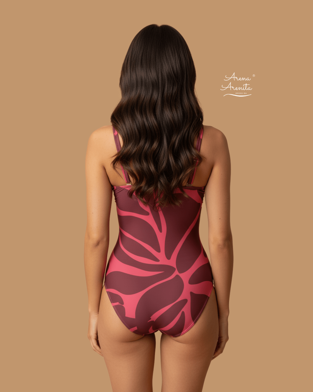 CONJUNTO DE TRAJE DE BAÑO COMPLETO CON COPAS TIPO PROTECTORES Y CORTES EN EL ABDOMEN Y PAREO.
