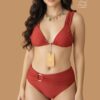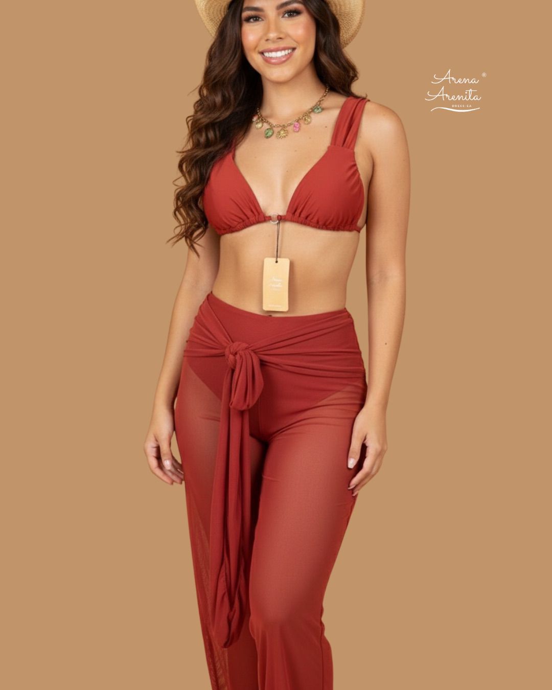 CONJUNTO DE TRAJE DE BAÑO TIPO BIKINI Y TOP CON COPAS TIPO PROTECTORES Y PANTALÓN UNITALLA.
