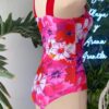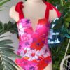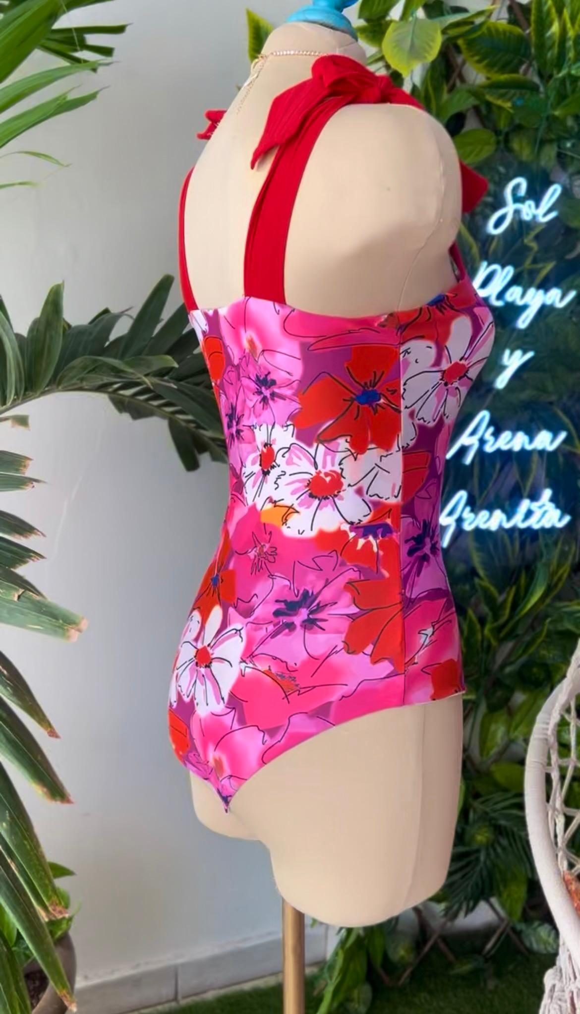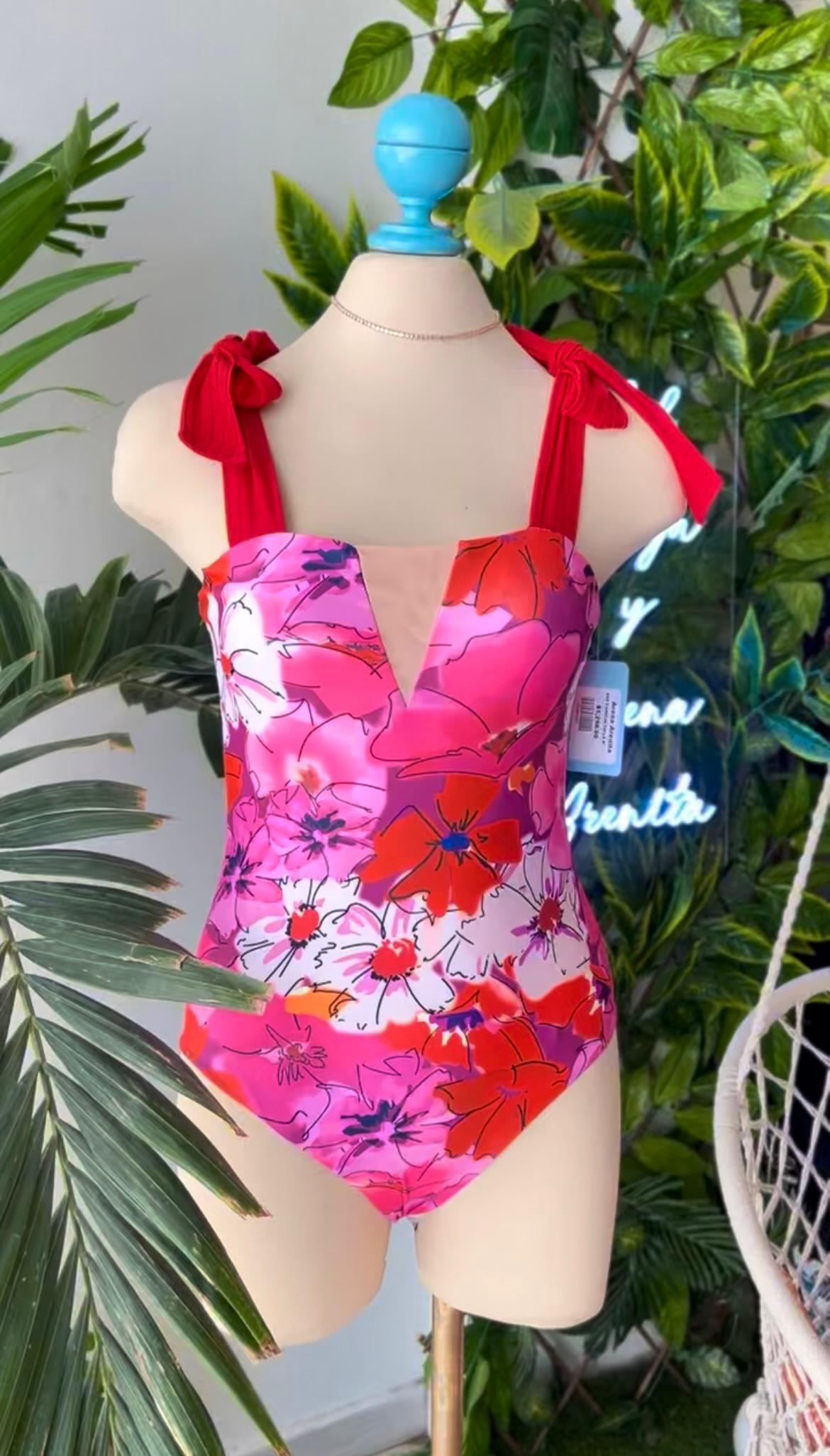 CONJUNTO TRAJE DE BAÑO ENTERO CON TIRANTES Y COPAS TIPO PROTECTORES, Y FALDA UNITALLA.