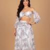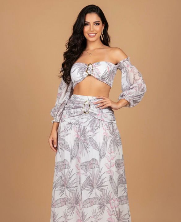 CONJUNTO DE TRAJE DE BAÑO DOS PIEZAS CON MANGAS, INCLUYE FALDA.
