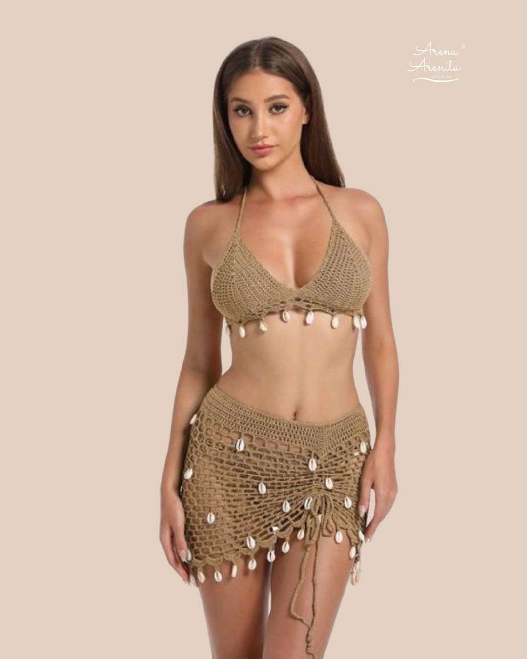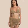 CONJUNTO DE TRAJE DE BAÑO TIPO BIKINI Y FALDA CORTA UNITALLA.