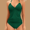 TRAJE DE BAÑO ESTILO TANKINI BULSA TIPO HALTER CON CALZON CON COPAS TIPO PROTECTORES.