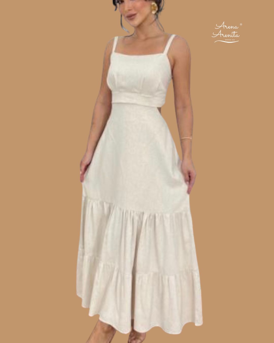 VESTIDO DE DOS TIRANTES Y ESPALDA BAJA DESCUBIERTO, CORTE MIDI.