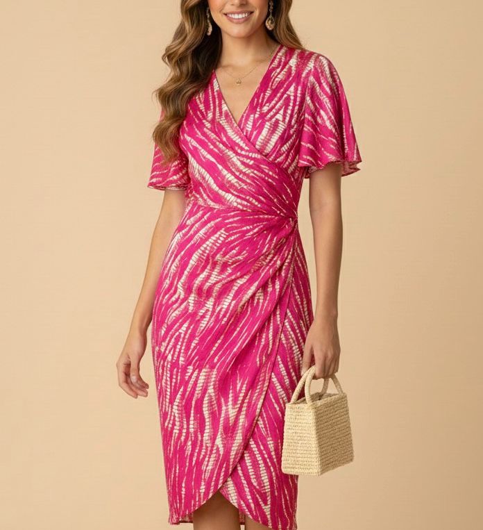 VESTIDO DE MANGA TIPO MARIPOSA, CORTE MIDI.